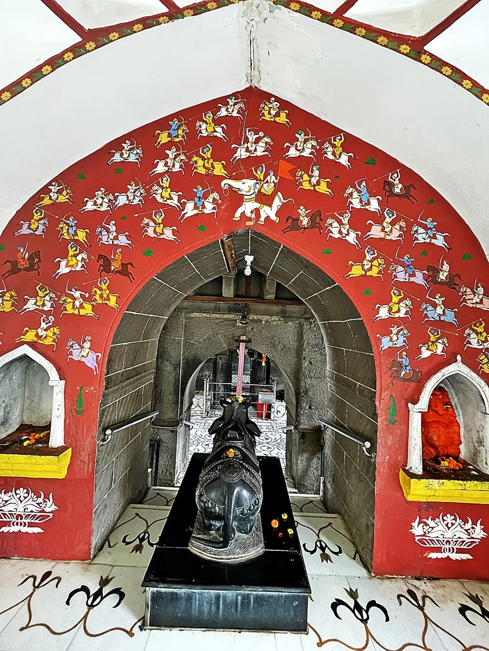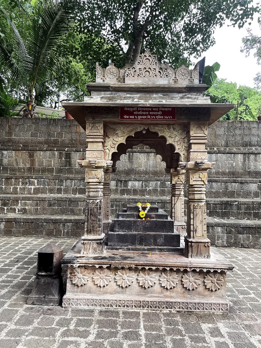 Inside, the sanctum containing the Shivalinga is actually below ground level, requiring descent by steps—although darshan is now from a safe distance owing to preservation. The gathering hall, with paintings, photographs, and Modi-script inscriptions, commemorates the site’s storied history. The adjoining Yajna Kund and Tulsi Vrindavan attest to continued ritual importance, while Chakratirtha, a natural spring behind the temple, flows into the Ram and Mutha rivers.